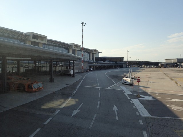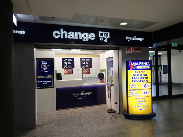 ミラノ・マルペンサ空港のターミナル1に到着。出てすぐにイクスチェンジがある。