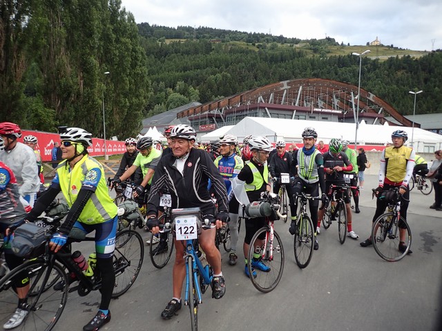混乱もなくボルミオをスタートする。Alpi4000の幕開け。7月22日朝7時スタート。で、オレらは7月28日午前3時がゴールリミットになるわけ。