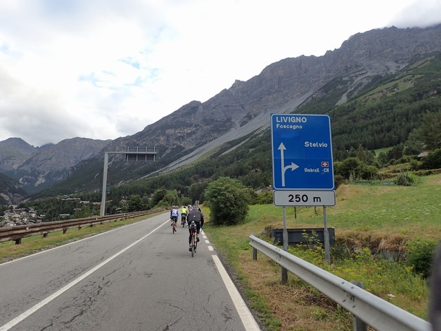 ステヴィルオ峠の方向も示されている。帰りはこの欧州2位の標高を誇るステヴィルオ峠を超えて、このボルミオゴールへ向かうわけだ。なんとか生き残りたい。
