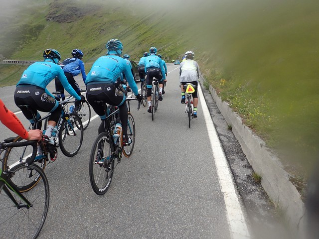 序盤の登りは、このようにたくさんのライダーがいるが・・・明日になれば、ほぼ誰もいないのだろう。石井医院長・・・がんばっていきましょー