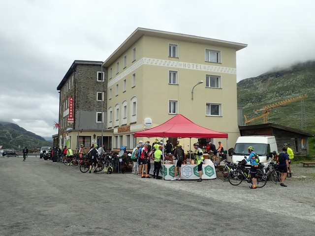 峠をちょっと下ったところ、ホテルだろうか。そこにチェックポイントと補給所があった。