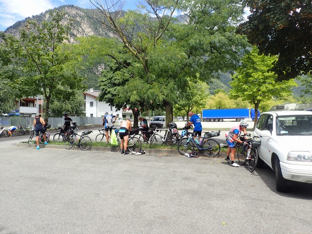 Chiavennaに到着。129km消化。チェックタイム13時27分。