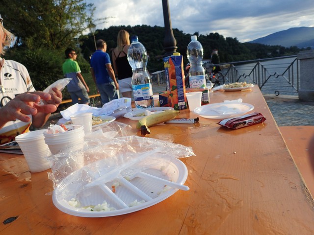 Laveno 118kmという長丁場なので、途中で休みを入れる。今日はLavenoまで行ってフェリー乗れば、宿まで20kmこなし終了。