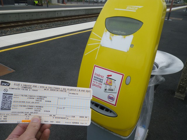 パリ(サンシールレコール)までの切符。自転車がそのままの状態なので、乗り換えも多め。
