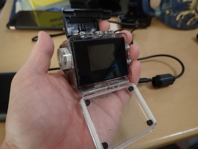 そこで、常時給電できるようにUSBケーブルを引き出しができる防水ハウジングケースを別途用意する。ハウジングケースとカメラの適合は要チェックね。