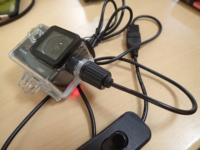 給電USBケーブルの間にUSBスイッチを割り込ませれば、ドライブレコーダーモードを使ってアクションカムのオンオフが手元でできるよね。