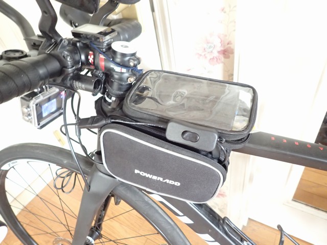 そうなると、モバイルバッテリーから給電する必要も出てくる。モバイルバッテリーは基本的にガーミンEdge800に給電をしているので、途切れることはない。