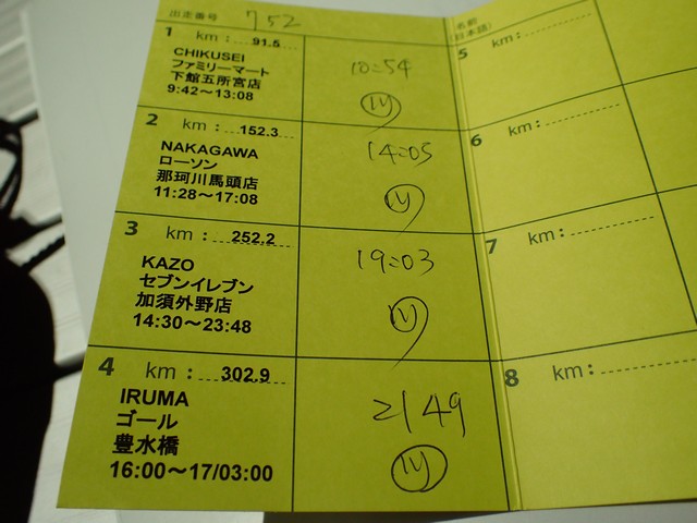 アタック那珂川300km到着。タイムは14時間49分・・・あかん。2年前より1時間以上遅い・・・