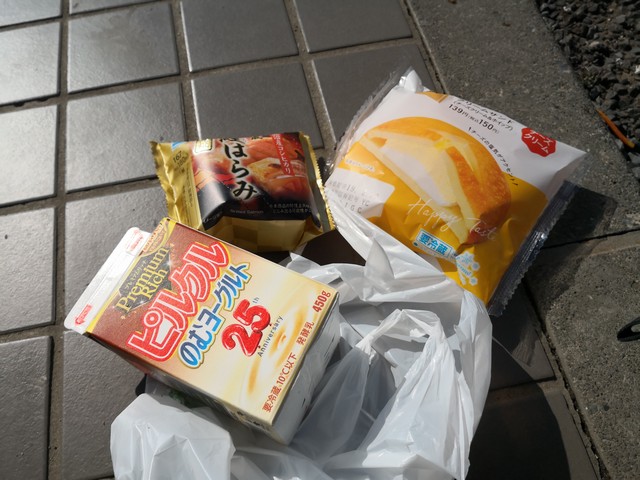 鮭はらみオニギリ、クリームサンド、ピルクルのむヨーグルト。なんかあかん。