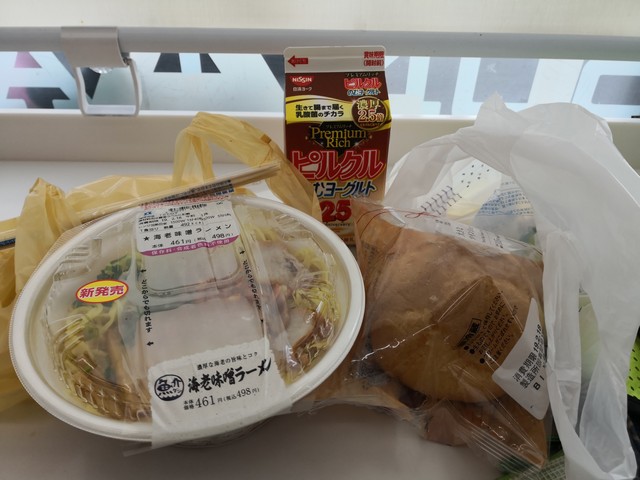 ちょっと暖かいものが食べたい。で、海老味噌ラーメン、ピルクルヨーグルト、シュークリーム。