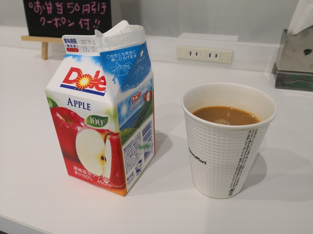 りんごジュースと砂糖たっぷりのコーヒー。17時過ぎ。