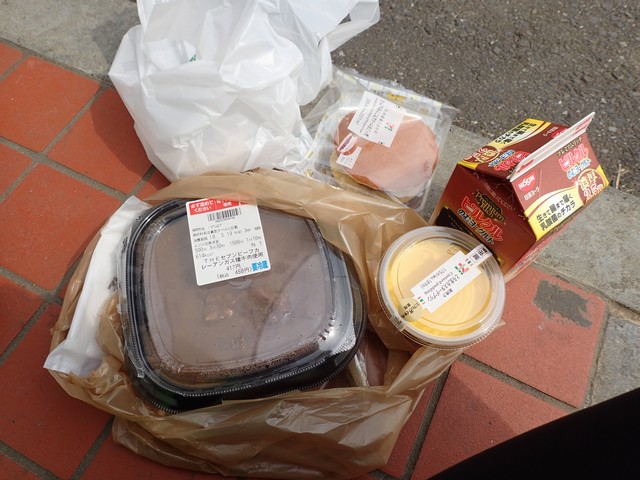 ビーフカレーにプリンにどら焼きにピルクル500ml・・・さらにバックポケットのオニギリも食べた。マジ食べ過ぎ。腹パンパン・・・