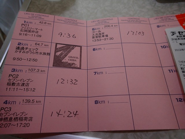 PC1ファミリーマート石岡国府店 42.8km到着。チェックタイム9時36分。