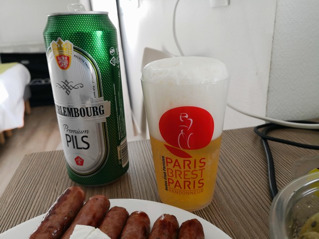 お昼ころより、ソーセージを焼いて、昨日のランブイエゴールで呑んだビールコップに冷たいビールを注ぐ。ダラダラとバイク梱包作業をする。