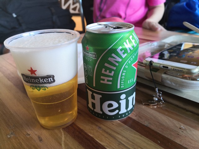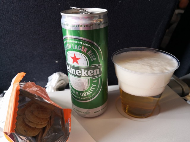 エールフランスのビールはハイネケン。350ml缶でないのがアレ。
