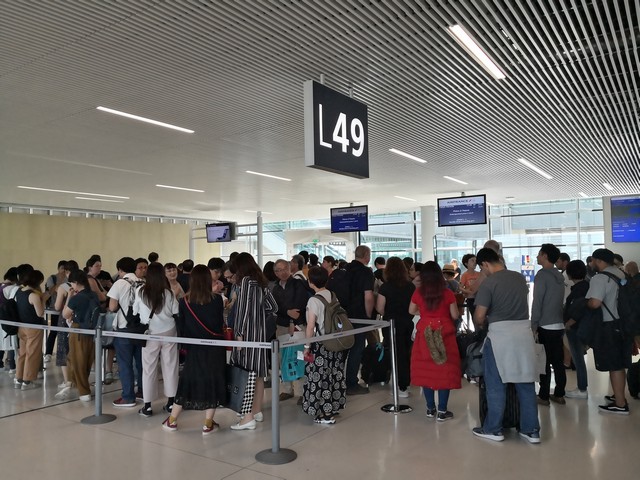 人垣ができSPらしき人が整理をしている。だれか入国をするようだ。