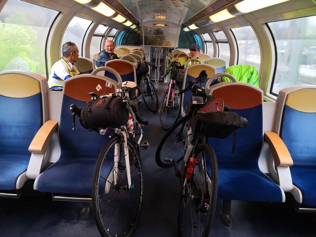 車検に向かう列車の中。ほとんどの車両で自転車が乗っていた。