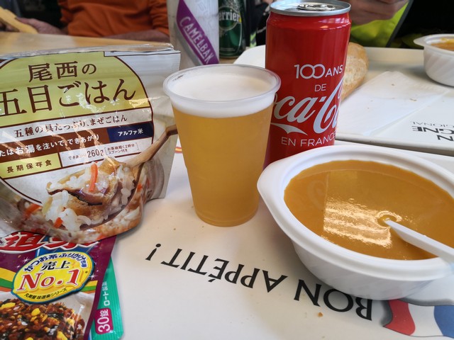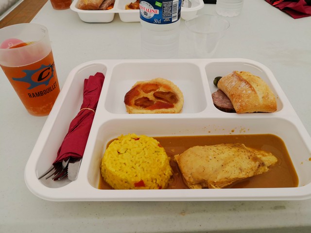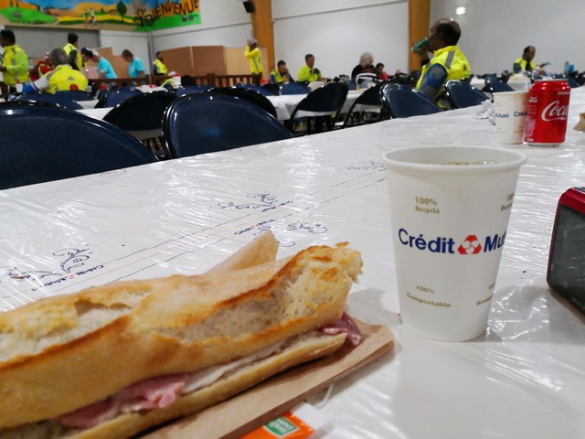 DREUXで初めてレストランに並んだ。PBPで初めてトレーを持って食事した。ポーク煮込みマジでうまかった。