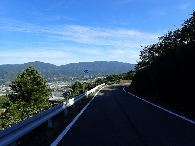 神社をでて、すぐにダウンヒルではなくちょっとした登り返しがある。その後ダウンヒル。神社を越えると県道が109号線になる。