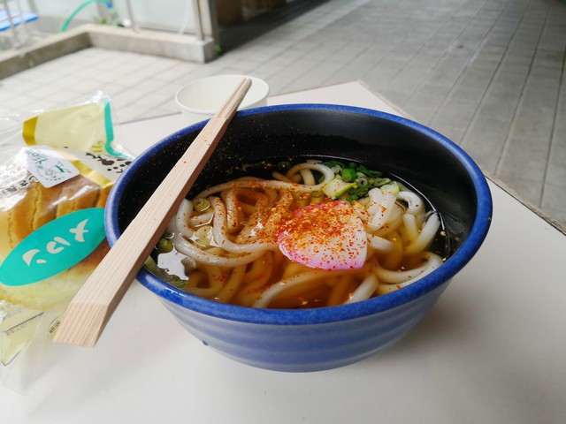 かけうどんいただく。あと補給食のパンと草餅買ってフレームバッグへ突っ込む。