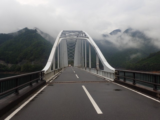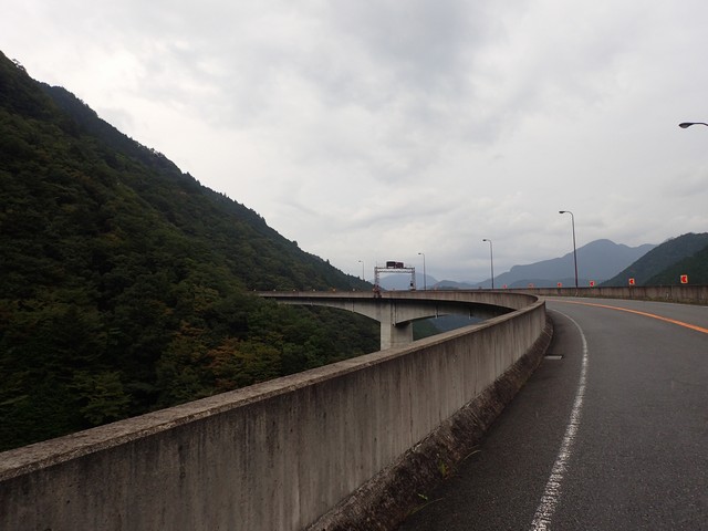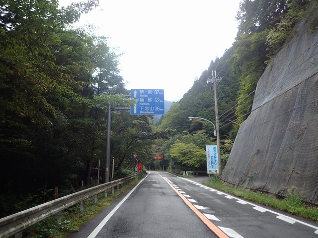 140km付近の今日一番標高を超えダウンヒルに。新宮87kmの表示が出てきたけど、千枚田とかダムとか寄り道するので、実際にはもっと距離は走る。