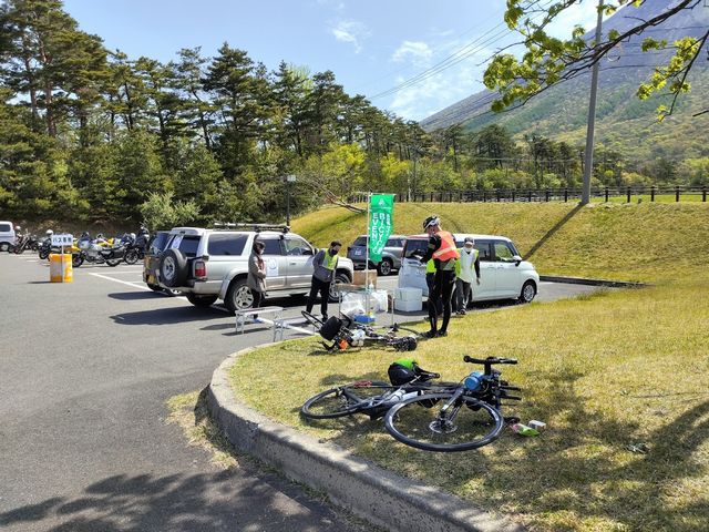 ここでスタッフさんにエアポンプを借りることができた。スタート前にエア充填できなくて、ずっと気になっていた。チェックすると5bar切るくらい。きっちり7入れてリスタート。