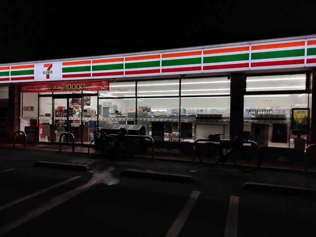 CH9:セブンイレブン三次マツダ707km 2時20分に到着。もし3人で走れなかったら1時間プラス間違いない。まだツキには見放されていない。
