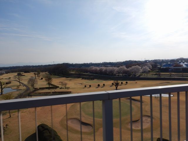 よしおか温泉が見える。桜がきれい。