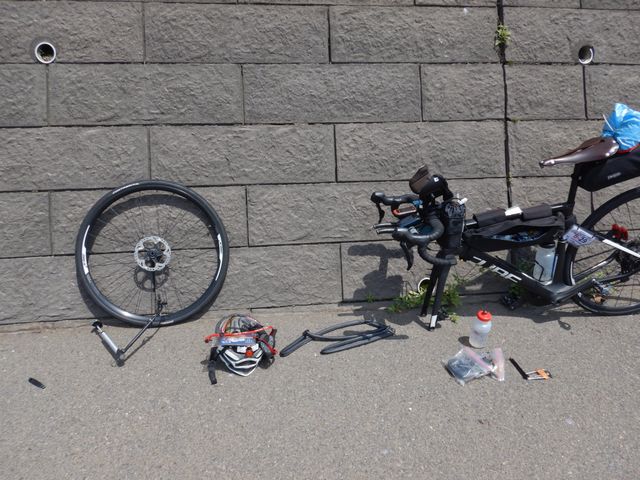 鹿児島フェリーをわたり、桜島を走り出してすぐにパンク。これが本当に堪えた。なんとか調子が上向きになってきたところで・・・運が無いのはこんな感じ。日陰もまったくなく直射日光下でのパンク修理は疲弊した。なんかぐだぐだで30分くらいかかった。